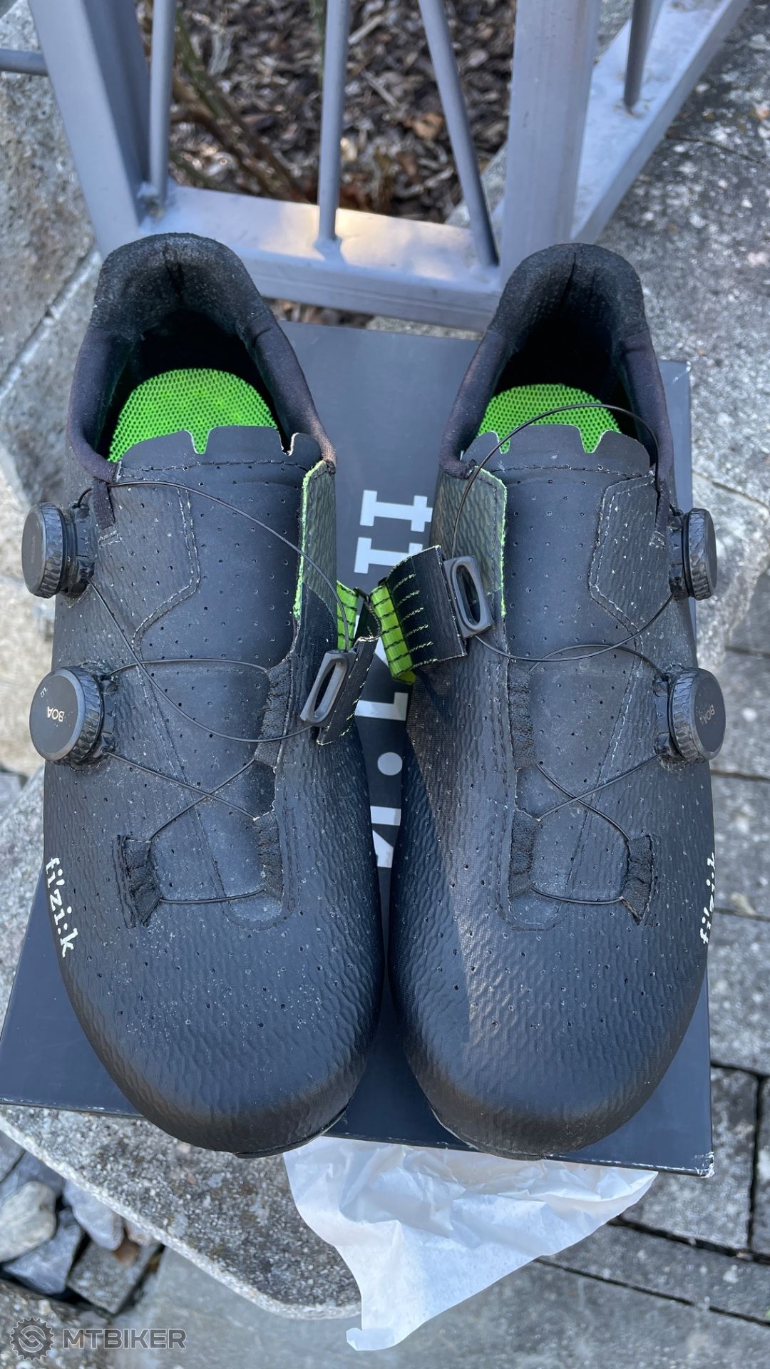 (urobil som detailné Fotky na ktorých je vidno že ani neonová látka ani ďalšie časti tretry nie sú vôbec opotrebované samozrejme Karbónová podrážka je už po 2-3 jazdách jemne škrabnutá ako na každých tretrách ale na fotkách vidno že to nie sú žiadne významné skrabance)