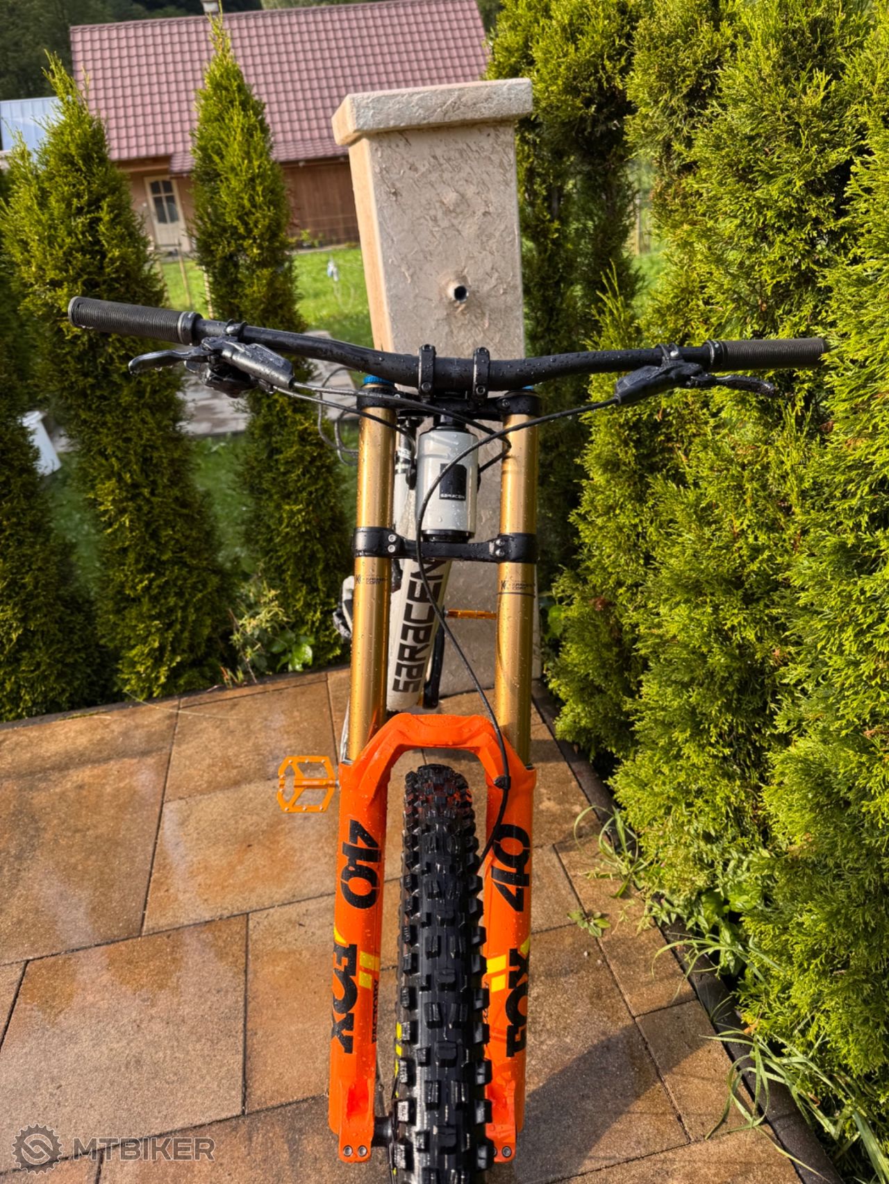 Bike je v ochrannej fólii pár oderkov sa ale nájde ale nič vážne rám nikdy nebol zlomený ani prasknutý tlmič bol zoservysovany pred 2 týždňami je tam použitý lepší olej aby tlmič nemenil vlastnosti keď sa zahreje boli odvzdušnené brzdy v predu aj v zadu Bike nebol jazdený závodné iba rekreačne
